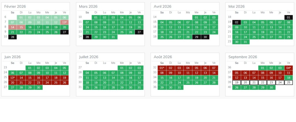 Ci-dessous nos disponibilités pour 2026 !